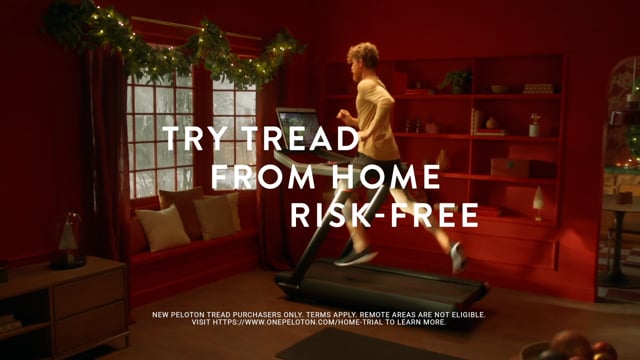 During Holiday 2022 the focus was very much on tactical digital advertising that was going to perform well in a competitive holiday landscape, however, we wanted it to still be as creative as possible and set a new standard for Peloton's art direction. I led the team to think of both the bike and tread spots as inhabiting a similar universe stylistically. As these ads were going to be out at the same time, I liked the idea of reversing the color palettes and infusing the environments with an air of whimsy (and joy). The Bike set was a reverse of the Tread (red room, gold protagonist /gold room, red protagonist). In the end, we created a great many ads across the two products that complimented one another and stood out in the busy holiday landscape. They performed very well.